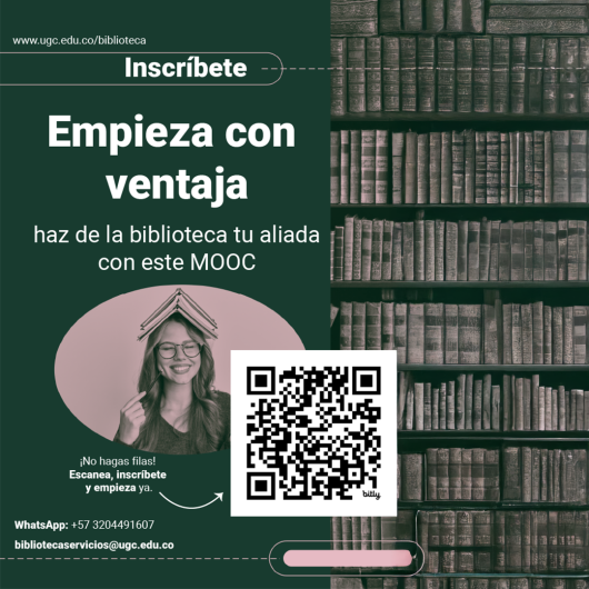 La Biblioteca UGC presenta un MOOC que te ayudará a empezar con ventaja académica, aprendiendo a aprovechar los recursos y servicios bibliotecarios. Un curso virtual, práctico y accesible que fortalece tus competencias de estudio e investigación desde el inicio de tu vida universitaria.