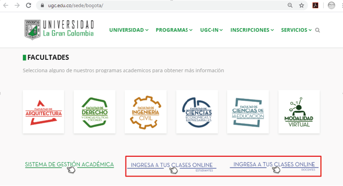 En la página web de la UGC se incluyeron los accesos a las clases online